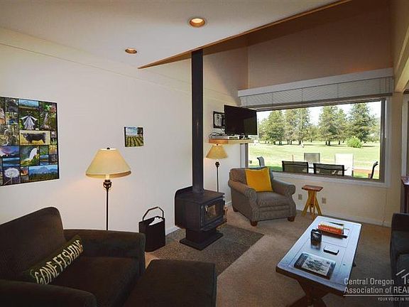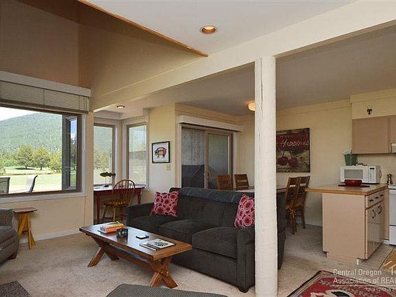Beautiful and light 3 bedroom 2 bath end unit condo with expansive views of the 18th, 1st,and 9th holes plus Black Butte! New siding, double paned windows, huge deck, top tier Washer/dryer and water heater. Cool in summer and very efficient wood burning stove. Partially furnishings (if desired).