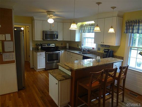 Totally updated custom built 5 bedroom/3.5 bath Colonial in the highly desirable Robious Road corridor sitting on a gorgeous acre private lot with a cul de sac location! An open floor plan with tons of natural light and hard wood floors up and down. A beautiful kitchen awaits you with new granite and new stainless steel appliances. There is a bar seating area, big pantry and a spacious breakfast room with a built in desk, large bay window and tons of counter top and custom cabinetry. Off the kitchen is a convenient back door mudroom with built-in cubbies, a utility sink and front loader W/D that convey. Perfect landing spot for the busy family. For the kids there is a huge first floor rec room that is ideal as a playroom or a second family room which is large enough to hold a ping pong or pool table and has a big closet to store all the kids%u2019 toys and games. Another great feature to this house is the large first floor bedroom with an en suite bath and separate entrance leading to the covered porch. Perfect for guests, in laws, boomerang kids or as a master suite. This bedroom also has its own staircase to a bonus room that could be a 6th bedroom, craft room, dressing room, or teenage hang out. Enjoy the spacious great room with a wood burning fireplace and built ins that opens to both a formal dining room and a sunroom with vaulted ceiling and french doors leading to the deck. Ideal for entertaining and family gatherings. Upstairs you will find four more bedrooms with hardwood floors and extra-large closets including a big master suite with a renovated bath with a tile shower. A home office above the two car garage has its own entrance as well as access to the main house. Perfect for a work at home job or a man cave! The real treat, however, is the gorgeous deck, covered porch and slate patio overlooking an expansive and very private yard perfect for playing ball, gardening, entertaining or just kicking back in a hammock. Besides an oversized two car garage there is a large storage shed and extra parking for a boat. Powderham, with its large lots and mature trees truly has the best location. Minutes from all the conveniences, yet you still feel away from the hustle and bustle. This house has it all and is worth a look! Priced to sell, a real gem.