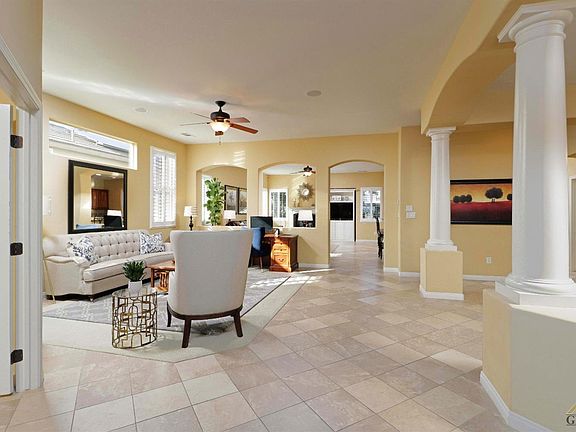This formal model home in NW Bakersfield is immaculate with all of the extras and upgrades you would expect. The 3297 sq feet extremely open floor plan flows like a dream. The 4th bedroom is currently being used as media room, but can easily be converted. Included are formal dining and living rooms, a huge open kitchen with granite counter tops overlooking the family area. It has a cozy fireplace great for snuggling up to on cool evenings. The master suite is truly fantastic and fit for royalty. It has a separate area that is great for a reading room/ separate office / or workout area. You'll need a trail of bread crumbs left behind so you don't get lost in the expansive master closet. Other upgrade and amenities include: Central vac, surround sound, multi zone hvac units, alarm system, jacuzzi tub, block walls, and custom light fixtures. Pride of ownership is evident as soon as you enter the double entry doors.