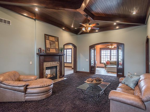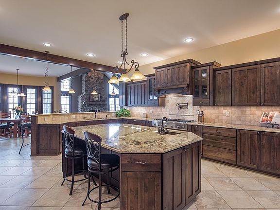 Elegance w/ every step, stately brick & stone estate one of a kind property. Perfect for so many needs, wants, hobbies, etc. Home has easy living space yet wonderful for entertaining or extended family. Gourmet kitchen w/ 6 burner stove & griddle, double ovens, 8 ft solid wood doors, 8 ft island, Dacor frig w/cabinet panels, walk-in pantry, 2nd floor family room with breathtaking views, Brazilian Tiger wood flooring, heated tile floors, every bedroom has a private bath and walk in closet Sun room with gas grill. Lower level has a garage entry, full bath, safe room. 3 car att gar & 2 car det. Owner suite w/ office, walk in closet, private laundry, 13 acres includes barn w/ 3 horse stalls, tack room, wash bay, riding arena, animal feeder, 2 pastures, stocked pond, & entry from 2 roads