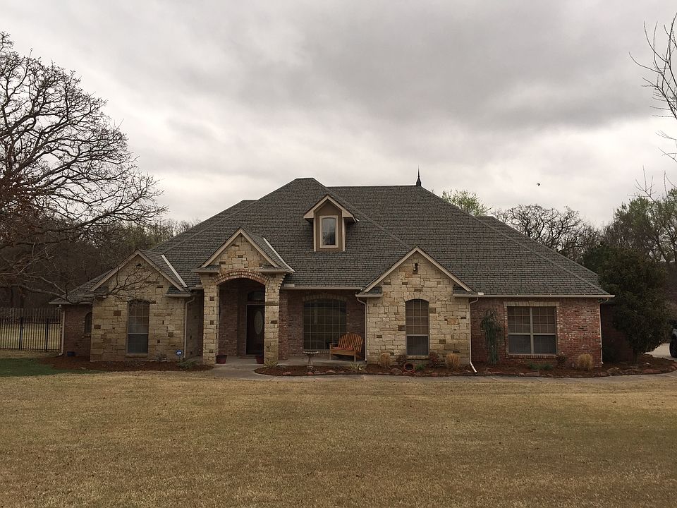 Beautiful home on wooded lot with gated entry to neighborhood. Hardwood floors in entry, halls, and formal dining. Great curb appeal. Very private large backyard. Well landscaped. Fire pit in the backyard. Covered patio and an open patio area. New roof and new guttering. Easy access to Lake Arcadia and to I-35.