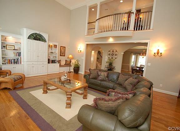 A true gem! This custom built transitional home is loaded with space, cratsmanship and volume! The entrance foyer is elegant and oversized, the 16' x 18' dining room will host the largest of dinner parties, the open family with 2 story ceiling is spectacular and the huge kitchen with glassed breakfast room will delight the best of cooks! Add to this a first floor master suite with adjoining office and remodeled master bath, front and rear staircases, 4 oversized second floor bedrooms each with bath access AND a huge second floor recreation room as well as a finished third floor perfect for a home theater! This home is situated on a private lot on a cul-de-sac in the most convenient and custom neighborhood of Granville South in one of the best school districts in Henrico!