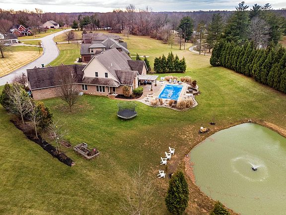 Why go on vacation when you can live in this beautiful retreat year round. This John Elpers built, past parade home, is better than new construction and has been recently updated throughout with an amazing 1.22+/- acre lot in Darmstadt in Shadow Bluff. This stunning 4 bed, 4 full bath home with an attached 3.5 car garage has it all. The outdoor oasis includes a private backyard with mature landscaping, a covered patio leading to a gorgeous lit pergola opening to the in-ground saltwater pool and a custom fire pit seating area with a 17 ft deep pond with new lighted fountain. Inside the home you will find new flooring throughout and no stone unturned from the custom tile work throughout to the quartz counters. The main floor boasts a true master suite with French doors leading to the office/den area and in the bathroom you’ll find a radiant heated tile floor and large shower and walk in closet with custom shelving and a large master bedroom. On the opposite side of the house sits a separate ensuite as well off the garage. On the main floor there are two living spaces and a dining room as well as an open kitchen with island seating. Upstairs you will find two bedrooms with their own full baths and a huge bonus room. This home has lots of space for you and your family for all your entertaining needs.