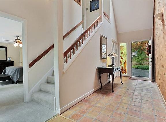 Cozy 3 bed, 3 full bath contemporary located at end of cul-de-sac in sought after Queensmill community. Slate walkway. 1st floor master w/ walk-in cedar closet, new carpet & updated master bath. Spacious 2nd bedroom on 1st floor next to hall full bath. Large dining room w/ heavy moldings. Updated eat-in kitchen w/ granite counters, stainless steel appliances including 6 burner Viking range, convection oven & regular oven w/ warming drawer. Oversized living room w/ stone, wood burning fireplace. Family room w/ vaulted ceiling & wood burning stove & butlers pantry. Upstairs 3rd bedroom w/ very own private bath. Bonus room on separate mini split HVAC system, tile floors & tons of closet space...great office/studio space/bonus room! Rear deck overlooking maturely landscaped, fenced backyard & detached shed/workshop with electricity & attic. Brick patio. Pergola. Upgraded electrical. Paved driveway. Private courtyard w/ hot tub. Refinished hardwood floors. Tons of storage throughout. Big attic. Award winning schools. Convenient location & easy access to interstates, restaurants, everyday necessities & so much more. Won't last long, do not miss!!!