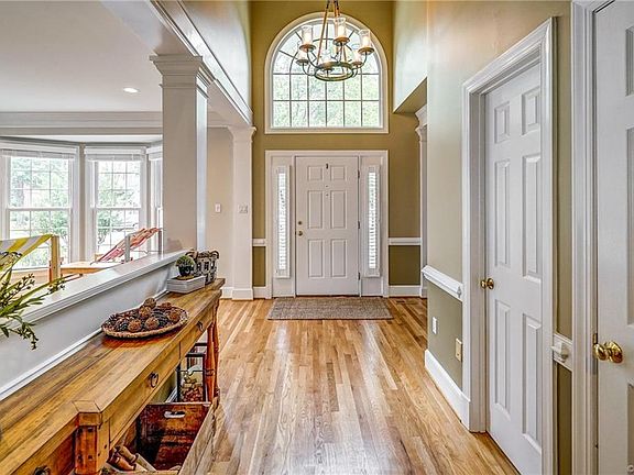 STUNNING Transitional Home in sought after Wellesley! 2-Story foyer with palladian window. Soaring 9 ft+ ceilings and wood floors throughout first level. Formal living and dining rooms with crown and chair moldings. Kitchen features granite countertops, stone backsplash, gas cooking, and breakfast bar with pendant lights. 2-Story breakfast area with deck access. Open 2-Story Family Room with skylights, gas fireplace, and tons of windows for natural lighting. A side staircase leads to master bedroom suite with vaulted ceiling and a luxurious master bath with his and her vanities, jetted tub, separate shower and private water closet. 3 additional bedrooms on 2nd level with full hall bath. Finished 3rd level with full bath makes the perfect recreation room or 5th bedroom. Additional features include new 2" blinds throughout, new exterior paint, 2-car rear entry garage, and full yard irrigation. The Wellesley lifestyle includes pools, tennis, tunnel and walking trails. Award winning Godwin HS district. You won't want to miss this one!