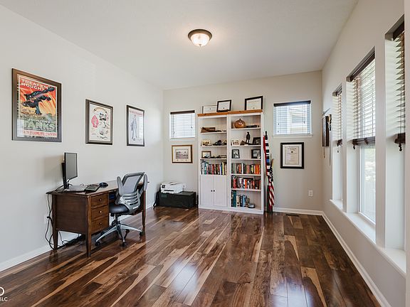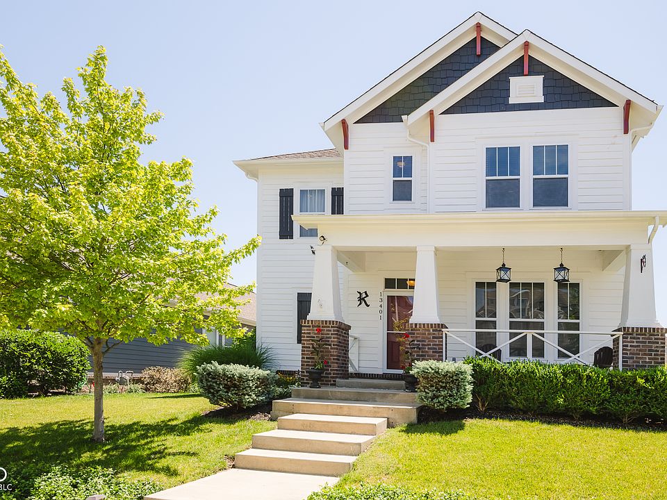 This classic beauty is nestled in the picturesque Saxony community, truly a quiet corner of Fishers with its own green spaces, trails, pizza, donuts and community pool a stroll away from your front door. Once you adore the front porch-step in and appreciate all the natural light and the soaring 10' ceilings! You're then instantly drawn into the famiy room-kitchen area where the spacious open floor plan seamlessly connects the living, dining, and kitchen areas, creating an ideal space for both entertaining guests and everyday living. Upgraded kitchen cabinets, granite countertops, backsplash, SS appliances, gas stovetop, double oven and oversized banquet island complete the space. The kitchen opens to your huge outdoor living area where you can enjoy a fire pit, grilling and hang your outdoor lighting! Upstairs begins with another living space/loft, 3 bedrooms and the laundry room. The generous sized owners ensuite is finished with a walk-in shower, dual sinks, private water closet and a lovely soaker tub. Taking you to the basement where there is yet another living space large enough for a pool table, gaming or other activities, a full bath, a true bedroom and 2 large storage closets! The 3-car garage is finished and fitted with tidy storage solutions. Again, all this in a quiet community close to shopping, HSE Schools and exit 210!