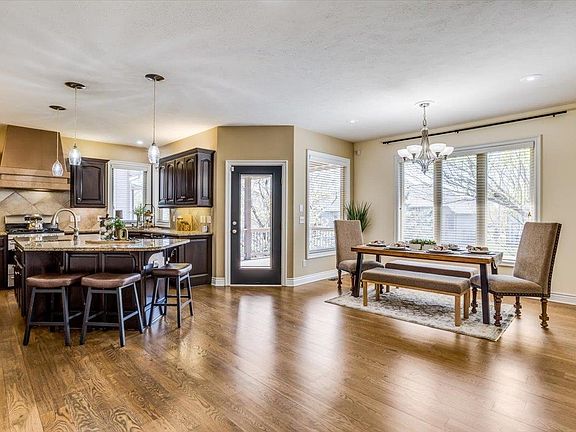 Welcome to The Hawthorne where luxury, space, and functionality blend perfectly in one of the area's most desirable neighborhoods. Located within the award-winning Andover School District and benefiting from low Sedgwick County taxes, this exceptional home offers over 4,800 square feet of beautifully designed living space, ideal for both everyday comfort and elegant entertaining. As you step inside, you’re greeted by a spacious foyer and an elegant formal dining room, complete with crown molding and ample room to host family gatherings or dinner parties. Natural light floods the home through a stunning wall of windows in the grand living room, highlighting the vaulted ceilings, beautiful hardwood flooring, and a striking gas fireplace with stone surround. The heart of the home is the chef’s kitchen, which features an oversized granite island with prep sink, stainless steel appliances, a walk-in pantry, and a large breakfast nook with direct access to the covered back deck. The deck offers serene views of the professionally landscaped, fenced backyard the perfect place to relax or entertain. The main-level primary suite is a true retreat, boasting high ceilings and an expansive en suite bathroom with dual granite vanities, a jetted soaking tub, walk-in tile shower, and generous walk-in closet. Also on the main level, you'll find a well-appointed powder room for guests, a large laundry room with stainless steel sink and abundant cabinetry, and convenient access to the attached 3 car garage. Upstairs, a spacious loft-style living area overlooks the main floor and provides additional room for relaxing, working, or play. Three large bedrooms and two full bathrooms complete the upper level, offering plenty of space for family or guests. The fully finished walkout basement is equally impressive. A large family/rec room opens to a concrete patio and backyard oasis. This level also features two additional bedrooms, a full bath, a cozy gas fireplace and a versatile conforming exercise room with rubber flooring. The custom wet bar is perfect for entertaining, with ample cabinetry, a wine rack, and a walk-in pantry. The unfinished area offers plenty of space and built in shelving. Additional highlights include a newer roof (replaced in Summer of 2019), beautiful finishes throughout, and special taxes set to expire in 2026 offering added value and peace of mind. Don't miss your opportunity to own this incredible property that truly has it all space, style, location, and comfort. Call Colby for more information or to set up a private tour. Welcome home to The Hawthorne!