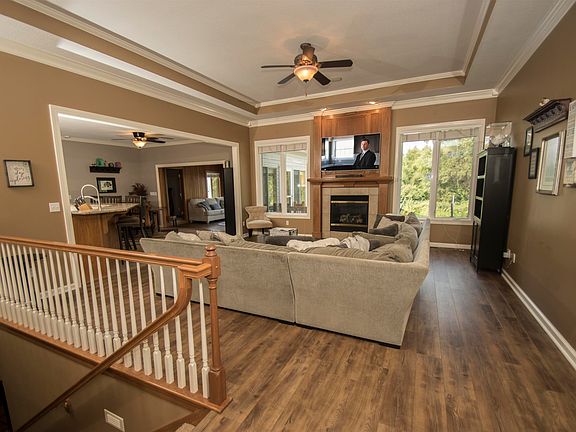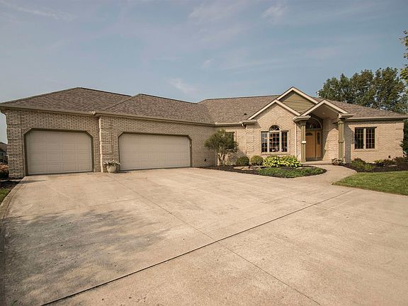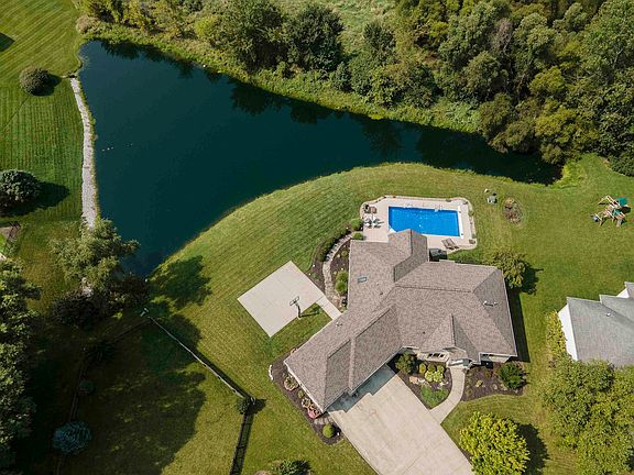 Summer’s Not Over Yet! Check out this Almost 3900 Finished Sq Ft in this Custom Built Ranch Home on a Daylight Finished Basement with a POOL! Great Curb Appeal with the all Brick front with Quoin Corners, Hip Roof, extensive Landscaping, plus exterior up lighting. Walk into the Open Foyer with Huge Circle Top Window, Cathedral Ceiling with a Wood Beam and Tile Flooring. Opens to Formal Dining Room & Great Room, Great Room with LVP Flooring Trey Ceiling to 10ft with Crown Molding, custom woodworking around the Gas Log Fireplace. Formal Dining Room with a Circle Top Window, Tile Flooring and Vaulted Ceiling. Open Kitchen with Custom Cabinets, Granite Counter Tops, Tile Backsplash, Tile Flooring, Under Cabinet Lighting, Breakfast Bar & Crown Molding. Spacious Breakfast nook with Crown Molding & Tile Flooring. Vaulted Wood Ceiling in Back room overlooking the Backyard with Lots of Windows & Surround Sound plus LVP Flooring. Finished Basement with a Wet Bar with Custom Cabinets, Granite Counter Tops and a 2nd Dishwasher. Large & Open Basement with LVP Flooring & Built in Surround Sound. Work Out Room or Den also in Basement. Main Bedroom with a Trey Ceiling, Crown Molding, Awesome Full Bath with a Jacuzzi Tub, Stand Up Tile Shower, Kitchen Height Custom Cabinets with a Double Sink & Granite Counter Tops plus 2 Walk In Closets. Nice sized 2nd & 3rd Bedrooms on the Main floor both with ceiling fans. 2nd Full Bath with Tile Flooring, Custom Cabinets & Granite Counter Tops. Large 4th Bedroom in the Basement with a Ceiling Fan & Walk In Closet. 3rd Full Bath with Stand up Shower and Newer Vanity with Granite Counter Top. Laundry Room on the main level with a sink area, cabinets & Built In Ironing board. ½ Bath with Pedestal Sink. Oversized Heated 3 car Garage. Now to the Back yard. 34 x 16 Heated “Sports Pool” with jets & electric automated key active cover (New pool pump 2022, New pool Heater 2020, New Pool Liner 2019) Plus Hot Tub (New 2020). 25 x 30 Basketball Court overlooking the pond. Backyard backs up to Pond, wooded area and commons area, so in an addition but acres of nature right behind you. Other Notables: New Roof 2019, New Furnace & AC 2022, some newer windows in 2019, Invisible dog fence, sprinkler system, central vac system, extensive crown molding & fluted molding. Check it out today!