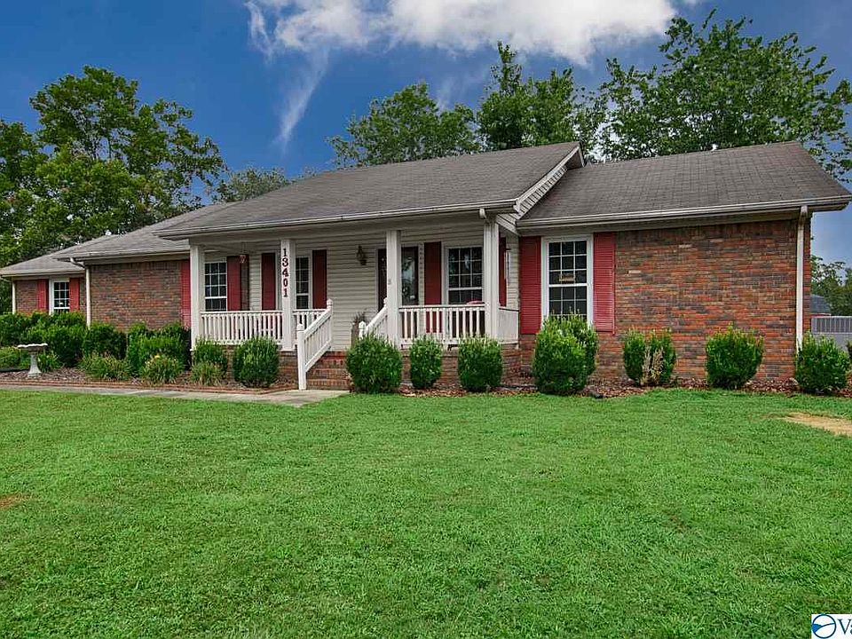 Full Brick Home with 3 Bedroom/3 Bath on a large treed lot. This 2,159 SF home features a large living room with laminate flooring and ceiling fan, separate dining room with laminate flooring, and eat in kitchen with vinyl flooring. The isolated master bedroom features laminate flooring, ceiling fan, and a walk in closet. Bedrooms 2 & 3 both feature laminate flooring with ceiling fans. Laundry is located just off of garage and features a 1/2 bath. Outdoor amenities include a covered front porch, two car attached garage, and a large treed back yard. This home is convenient to Hwy 72 and I-65.