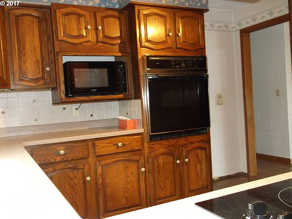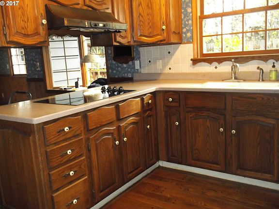 Homey 3BR 1 1/2 bath, living room plus a family room. FR has propane fireplace LR Wood FP. Well designed kitchen, Corian style counters, lots of cabinets plus pantry, MBR w/wi closet, 1/2 bath, opens to back yard,beautiful hardwood floors, Covered deck plus 2nd deck, fenced yard. Desirable 8+. acres, shop approx 27 X 36, wood/tool shed, accessory building has a half bath and kitchen area wonderful for entertaining or canning kitchen