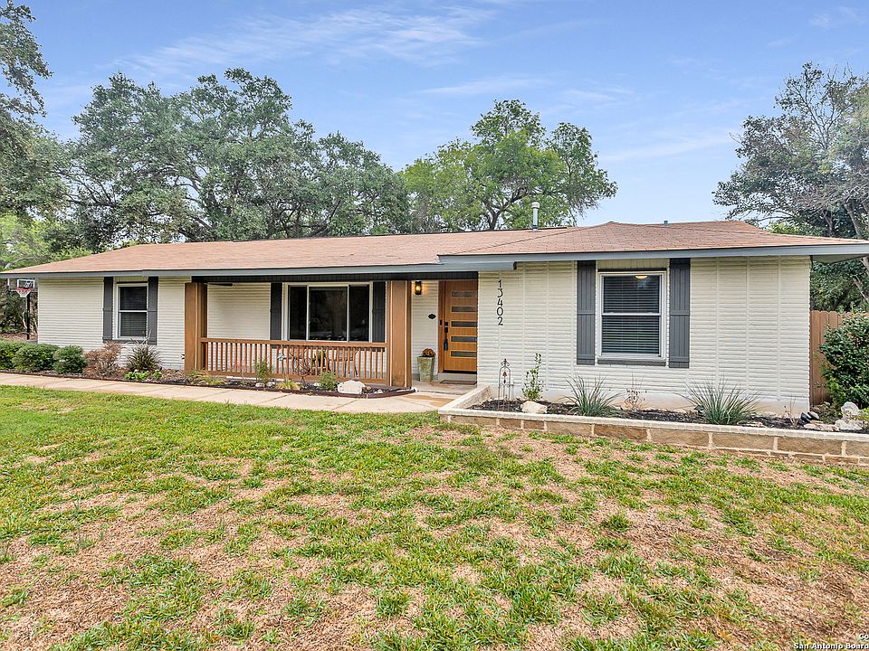 BEST PRICE IN THE AREA for an updated, single story 4 bedroom plus study on over 3/4 acre corner lot in Helotes! Come see this charming home with spacious living/dining area with wood burning fireplace. Updated kitchen with granite and stainless steel appliances. Decorator touches in the master bedroom. Privacy between each bedroom. Home is surrounded by mature trees - corner lot allows access to backyard with gate for additional storage and access to storage building. Covered patio in back plus gazebo! Swim spa does not convey (unless purchased for addl cost) and will be removed - patio slab underneath will remain. EZ access to Bandera Road/Hwy 16 and Loop 1604. Close to shops and restaurants.