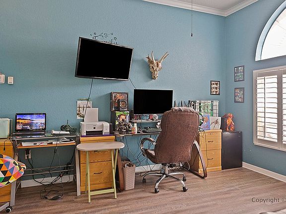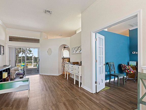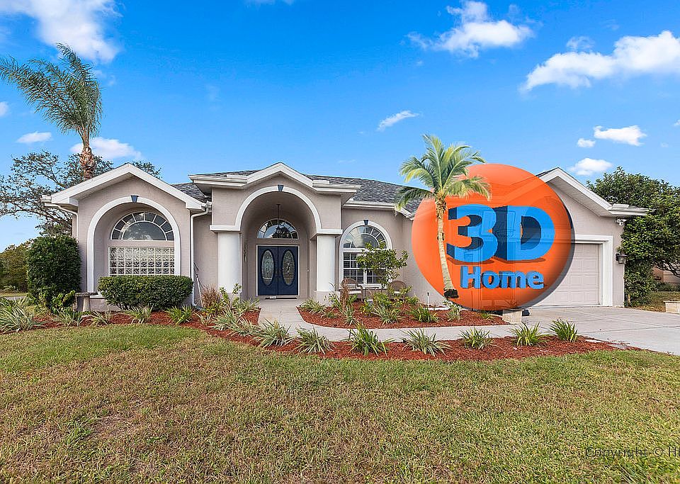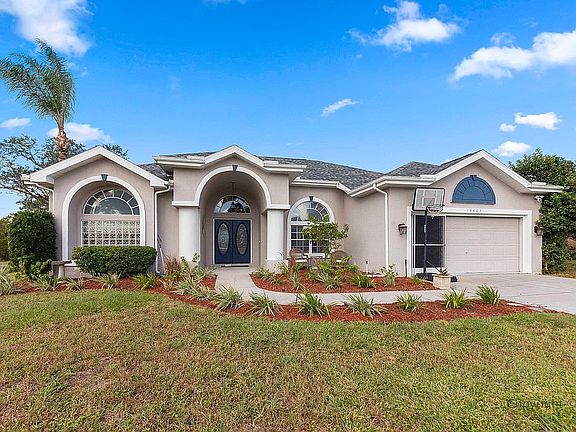 Located in the beautiful subdivision of Pristine Place. This home is located near the Suncoast Parkway, schools and shopping. This gated community has many amenities such as a club house, pool, playground, tennis court and much more. From the drive up this home captivates with beautiful greenery and columns. The double door allows for a stunning entrance into the Foyer where you will be astounded by the high ceilings, archways and crown molding. A spacious well lit in home office awaits you behind elegant French doors. A great feature of this home is its split floor plan allowing for a large master bedroom that leads to a stunning master bathroom on-suite with spa like atmosphere. Off the family room the spacious bedrooms have ample closet space and large windows for natural light. The guest bathroom is located between the bedrooms. The kitchen has all the cabinet space you could need and a breakfast bar that overlooks the dining room and family room. And let's not forget to relax on the beautiful lanai this house bodes with access from the family room, living room and guest bathroom for your convenience. (FURNISHINGS ARE NEGOTIABLE)