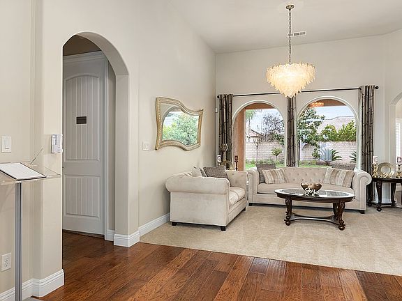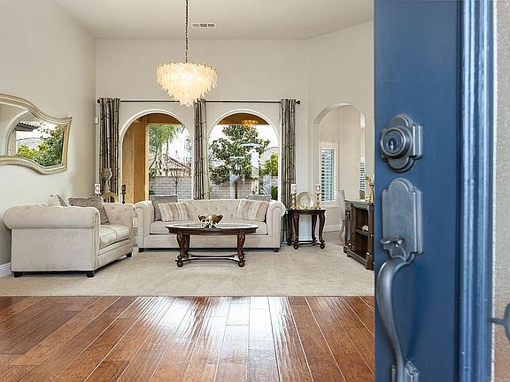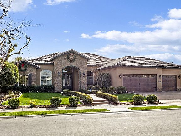 Beautiful home located in the exclusive NW Bakersfield gated community of Masterpiece Estates. This Froehlich built home won't disappoint with it's highly desirable split wing floor plan. If you love to entertain, this is the house for you. They say the kitchen is the heart of the home and it truly is featuring granite counters, stainless appliances, double ovens, walk-in pantry, breakfast area, large island that opens to family room with lots of natural light and views of the patio and backyard. The master suite is oversized and has a wonderful en-suite with large shower, soaking tub and walk-in closet. Four additional bedrooms with one used as an office for home schooling or work from home. The outdoor space is very tranquil with raised garden beds, 10 fruit trees from citrus, apple,peach,cherry,plum and avocado. The lot has the north/south exposure and is perfect for evening BBQ's with family and friends. Owned solar, large side yard with room for toys/boat and 3 car garage.