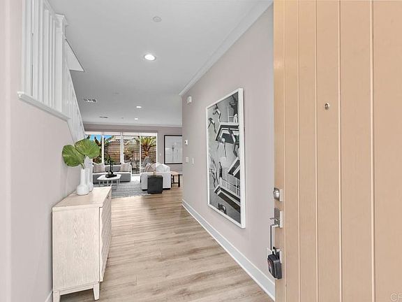 Built in 2020 and located in the prestigious Pacific Highlands Ranch community of Carmel Valley, this spacious and modern 2358 sqft home offers 4 beds, 2.5 baths, and a thoughtfully designed open-concept layout. The chef’s kitchen includes stainless steel appliances, built-in commercial-grade side-by-side refrigerator/freezer, a spacious pantry, and a center island with European quartz countertops. The great room features abundant natural light from a wall of windows and a sliding door leading to the backyard. Stylish luxury vinyl plank flooring extends throughout the main level and continues up the staircase and through the upstairs hallway. All four bedrooms are located on the upper floor, each offering generous walk-in closets. The primary suite includes an elegant en suite bathroom with dual sinks, a large walk-in closet, a free-standing soaking tub, and a separate shower. A conveniently located upstairs laundry room adds functionality and ease. The current owners, who purchased the home brand new, have made numerous thoughtful upgrades throughout. The beautifully landscaped backyard includes a stunning Ipe privacy fence, a built-in fire bowl, tropical garden beds and low-maintenance design. Additional amenities include a 2-car garage with epoxy flooring, an owned 2.6 kW SunPower solar system, a parallel 3.6 kW Tesla solar and 5 kW Powerwall backup battery (resulting in extremely low or no monthly electric bills), a whole house water filtration system, and a security system. All windows are outfitted with custom high-end Norman shades for enhanced comfort and privacy. Enjoy a walkable lifestyle with nearby access to The Village at Pacific Highlands Ranch-home to Trader Joe’s, restaurants, shopping, and fitness studios. Located approximately 10-minutes to the beach and offering quick access to major freeways. Situated within the award-winning Del Mar Union and San Dieguito Union High School Districts, this home is a rare find-not to be missed!