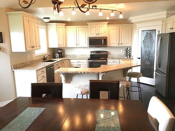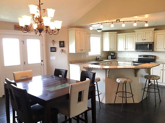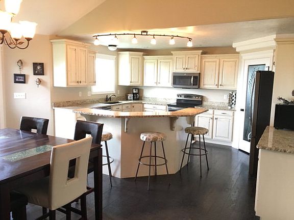RUSTIC COUNTRY RANCH HOME. Located in the county, this 2014 built home features 5 bedrooms and 3 bathrooms with Vaulted ceilings and open floor plan Enjoy your one of a kind mantle and hearth for your upgraded gas fireplace. Granite counter tops throughout, Hardwood and tile floors, fully finished daylight basement with. Exterior features an open deck where you can view the valley. Master Suite with huge master bathroom featuring jetted tub and separate tiled shower. Room to build a shop on the .689 of an acre lot.