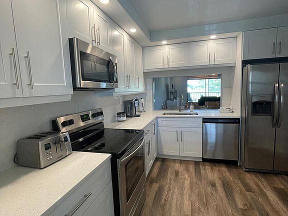 Ready for resort style living! This move-in ready unit is beautifully renovated 2 Bedroom 2 Bathroom Corner Unit located in the highly desirable and affordable Eastpointe Community. The unit features all new fixtures, Washer/Dryer, AC, Water Heater, Recessed Lighting, updated kitchen with plenty of cabinet space, Quartz Countertops, & SS Appliances. The screened patio is overlooking the lake and one of two championship golf courses. The unit is steps away from the Pinewood hot tub and pool. The Eastpointe community is an exclusive gated community includes amenities such as golf, fitness, tennis, and dining activities. The newly renovated community club house and pool will be opening soon. Don't miss this opportunity!