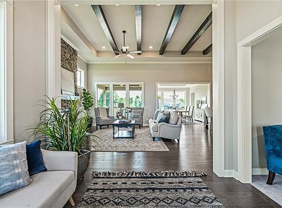 Debuting the Pikewood plan in Southpointe by Award Winning Summit Homes! You wont want to miss this beautifully designed home reverse 1.5 that is like no other! Kitchen is a Chef's dream w/ a HUGE island, gas cooktop, undercabinet lighting, custom wood vent hood & upgraded Pro Frigidaire Galley series stainless steel appliances. Gorgeous Stone Fireplace, Tall Ceilings with Beams, accent wall, trim details, wall mirror on stairway, a main floor bedroom with private bath, additional main floor office/bedroom with beautiful french doors, and wood floors throughout main. Spacious lower level features a parallel wet bar, Recreation Room, 2 bedrooms with walk in closets & both have access to a true Jack and Jill bath, w/ tons of storage left over! Super efficient LED lighting, soft close drawers throughout, security system w/ 2 FREE months of monitoring and an active radon mitigation system!! On a beautiful walkout lot with irrigation and a covered composite deck that includes a outdoor fireplace with TV cabinet for outdoor entertaining! You don't want to miss this one!