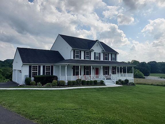 This beautiful home sits on almost an acre and a half with a wonderful view of the mountains and woods. Perfect for those looking to be close to a city, but with the privacy of being in a rural area. From the wrap around porch to the spacious deck, you will feel like you are in a personal oasis. As you enter the home, you will notice the traditional layout with custom touches like the barn door and upgraded kitchen. The sun drenched main level boasts hardwood flooring, crown molding, and private office space. Enjoy breakfast or dinner on the deck accessed through the fully upgraded kitchen. The upper level features 4 bedrooms, one of which is a luxurious owner's suite. As you descend to the basement, there is room for a gym or flex space, 2 bedrooms, a full bathroom, and walk out access to the backyard with a fire pit. The garage features an electric car charger and plenty of space for built ins. Do not miss this opportunity! Perfect amount of privacy, but close to commuter routes, shopping and dining in the city.