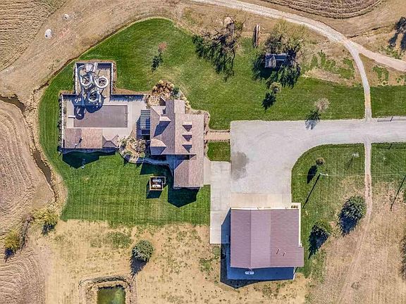 THE WOW FACTOR! CHECK OUT THIS CUSTOM HOME on 13.7 ACRES with OPEN FLOOR PLAN, GORGEOUS KITCHEN with WOLF oven, SUBZERO refrigerator and 2 drawer dishwasher, CENTER ISLAND and LOTS OF STORAGE. HOME has 3 BEDROOMS (one is currently the loft) 3 1/2 baths, 2 fireplaces, heated floors, walkout basement, DESIGNER BATHROOMS, plantation shutters and QUALITY WORKMANSHIP throughout. Walk out the basement to an incredible pool (25 x 60) , covered patio, outdoor kitchen, outdoor shower, pergola and POOL HOUSE. Pool house has the 4th bedroom, a kitchen and full bathroom. Pool has new liner, auto cover, incredible lights and an amusement park worthy slide AND can be controlled by your cell phone. Home also includes a 40 x 60 shop with bath and small kitchen AND a gorgeous apartment with (approximately 500 sq feet) that has all appliances included with living area and bedroom and full bath. Shop is heated and also includes safe room and overhead storage. TWO darling mini cabins perfect for kids or grandkids. Partial pond with dock (Pond shared with neighboring owner) and trails for ATV's throughout property. Square footage on listing does not include pool house or apartment square footage. CHECK OUT THIS DREAM HOME!!