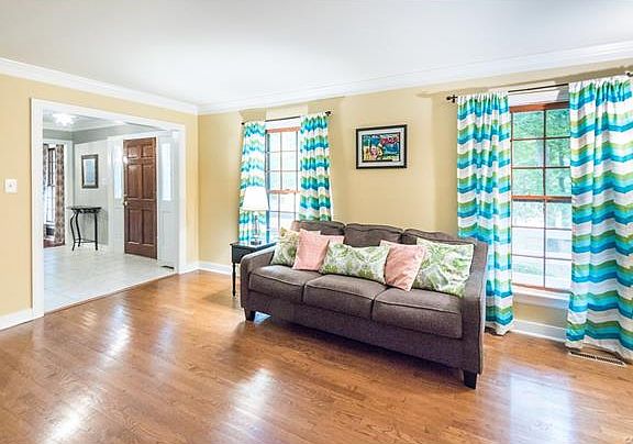 Beautiful, well maintained, spacious home in Queensmill. Updated with new paint, hand scraped Acacia wood flooring, Granite countertops, large kitchen Island with seating, new lighting in kitchen, and more. Newly refurbished crawl with French drain and pump. All rooms are generously sized. Formal living room would make a great office, library, or play room. Formal dining room off updated kitchen. Large kitchen open to family room and Florida room (with ceramic tile and thermal windows). Laundry/mud room with large sink and cabinets located between kitchen and garage. Five bedrooms and 3 full bathrooms upstairs. Fifth bedroom with attached full bath has a separate entrance and is perfect for college student, or in-law. Relax on your front country porch, or on the ground level wrap around deck off the Florida room. Deck has gas line for grilling. Half acre lot is beautifully landscaped. Circular driveway in back offers ample parking. The 2 car garage has built-in workbench and shelving, and is a perfect workshop. This lovely home is located on a quiet cul-de-sac with minimal traffic. Community pool and playgrounds close by. Great schools and close to interstate.