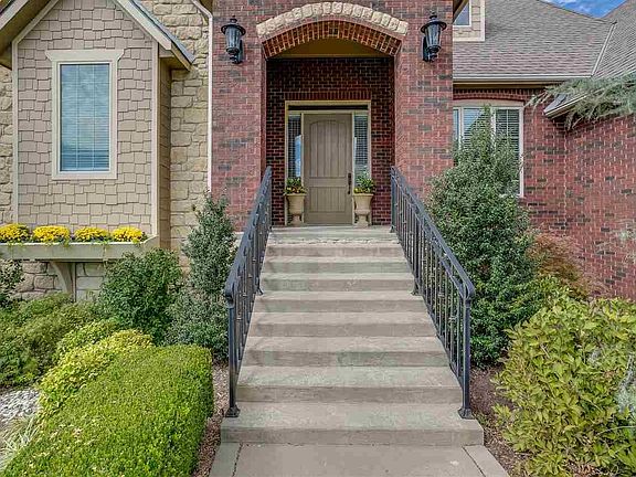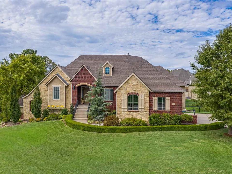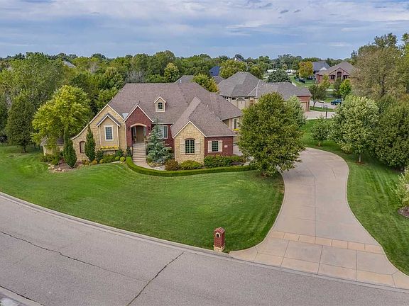 Home is now vacant, clean and ready for it's next owner! Easy to show!!!The highest of quality, this immaculately maintained home is move-in ready. Enjoy walking into a wide-open, exquisite home with a wall of over-sized windows allowing plenty of natural light and a panoramic view of the private fenced and treed back yard. The main level has an open floor plan with extra-high cathedral ceilings, formal living, formal dining, a warm and welcoming hearth room with fireplace, main floor laundry room and a split bedroom plan. The gourmet kitchen features granite counter tops, eating bar, built-in oven and microwave, large walk-in pantry and a picture-perfect breakfast nook surrounded by windows for a stunning morning view. Elegant master suite, beautiful master bath, and a substantial walk-in closet. The walk-out lower level is truly unlike no other, and is a must-see! Made for entertaining and plenty of extra living space, this area features a billiard room,an over-sized bar with gorgeous stonework, and a wine room with custom made full-length metal doors, impeccable wine rack, and one-of-a-kind custom lighting, giving it the perfect ambiance. This home features a superb, impressive theater with extra comfy theater seats on 2 levels, theatrical lighting, projector, surround sound and its own heat and air with climate control. The basement features 10-foot ceilings, 2 bedrooms, a full bath, half bath, and storage area. The downstairs walks out to a true oasis. You are certain to spend hours outdoors in an incredible setting boasting an outdoor kitchen with an expansive patio area which includes a built in gas barbecue, refrigerator, and impressive stone wood-burning fireplace. Head to the upstairs deck to enjoy extra outdoor space. A large driveway takes you to the three-car side load garage with epoxy coated flooring and extra space for cabinets or work areas. This home offers the lifestyle you've been dreaming about. Be sure to view the video and enjoy the additional pictures located under "Virtual Tour" to see everything this fabulous home has to offer. There are too many other features to mention! Andover Schools. Sedgwick County taxes. Don't let this one slip away.