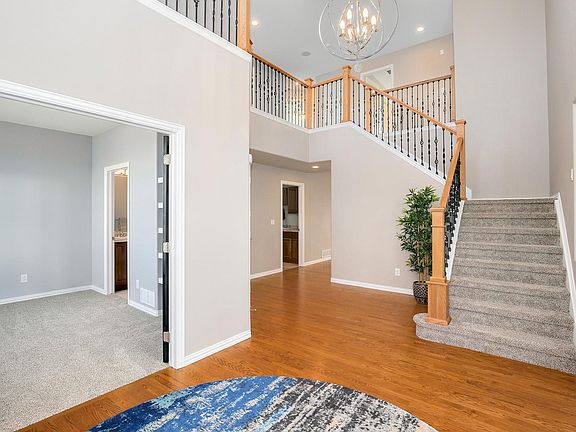 Spectacular immaculate home on huge 17,758 sqft premium lot directly across from Marshall Lake! Featuring an impressive spacious layout with gleaming hardwood floors, 2-story foyer, formal dining room, & grand staircase as you enter. Gorgeous french doors open to the office with built-in shelving & ensuite. Entertainer's kitchen w/ granite countertops, large center island, S.S. appliances, pantry & breakfast nook w/ access to the spacious fenced backyard w/ 2 patios. The living room offers backyard views and a cozy gas fireplace to gather round. Upstairs, is a versatile loft space perfect for study space or second office. The large master retreat features your dream walk-in closet, a charming balcony overlooking Marshall Lake, & luxury 5-piece bathroom plus a private staircase! 3 additional bedrooms & 2 baths complete the upstairs. Wait until you see the 4-CAR FULLY FINISHED & HEATED GARAGE! Basement offers storage & room to grow. Amazing location near parks, trails, & shopping.