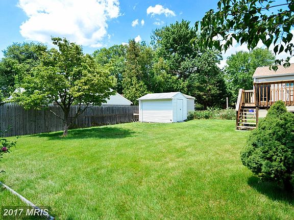 Location, Location! 3BD,2 full baths brick home w/ hardwood floors throughout upper level & carpet LR & DR. great Kitchen leading out to rear deck. New gas stove. Lower level ,3 spacious rooms-- storage,work room & laundry room with separate walk out entrance to patio with level fenced in back yard.Storage shed with electricity. Across fr Harmony Hills Elm School.