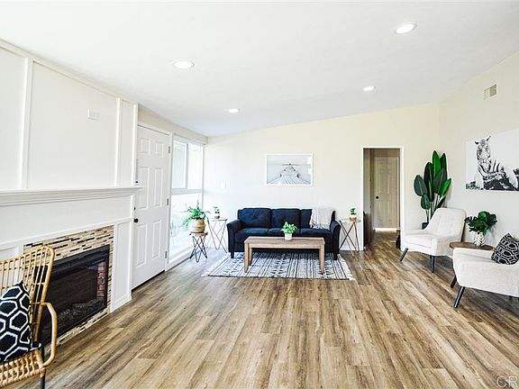 Beautifully remodeled Poway gem! Magnificent single level home with many upgrades. Freshly painted, high ceilings, bright white cabinets & quarts counter tops in the open layout kitchen, new stainless steel stove, microwave and dishwasher, recessed lighting, new vinyl plank flooring throughout the entire home, glass tiled fireplace, remodeled bathrooms, dual pane vinyl windows, nice sized yard w/ side gate access for toys, laundry room for full sized washer & dryer, A/C and tankless water heater.