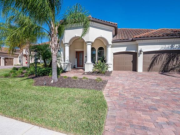 Situated in the most desirable gated neighborhoods in Lakewood Ranch. Prepare yourself for the impressive Georgetown Model by Lennar with premium finishes, such as open floor plan, Crown Molding throughout, Tray Ceilings, Gourmet Chefs kitchen gas range built in oven, expansive granite counter island and Mahogany Cabinetry. First lets talk about this estate home porch, with 4 stone columns and architectural stone trim, showcasing arched windows, and as you sit watching the lavish, beautifully manicured lawns, that are maintenance Free and your HOA covers, so you can enjoy your weekend by your private pebble tech pool and spa. Custom landscaping lights that leave your nights of entertaining with a serenity feel.This huge lot has space to play at the back for your family and pets. And not forgetting the 3 car garage has epoxy floors and oversized overhead storage. This fresh bright neutral interior leaves it move in ready. So come live, work and play the lifestyle you and your family deserve.