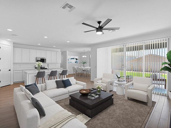Be the first to live in this just finished 4BR + Den + Loft +3 1/2 Bath & a 3 car garage home. Walk-in closets in all BR's. Great Kitchen has XL Island w/breakfast bar, Gas Range and Oven, White Cabinets and Quartz Counter tops, Walk-In Pantry Stainless steel appliances and large dining area. Washer Dryer Refrigerator included. Lg Master Suite. Faux Turf in the back with easy to maintain landscaping on an automatic watering system. Wood look Tile throughout 1st floor except Den and storage closet under the stairs, Grassy areas at the end of each street. don't miss the community playground. window coverings & ceiling fans included too. Paver Driveway and walkway. Close to shopping and restaurants & just minutes from the 303 to get anywhere you need to go. Dogs allowed with Lessor approval