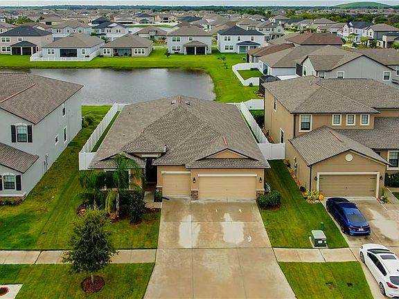 Get ready to fall in love with this beautiful, open floor plan, one story home. MOVE IN READY !!! Featuring a kitchen that is a chef's dream! There is a ton of counter space and even an island with outlets making baking easier than ever. The granite counter tops complete the look. 42"cabinets are in abundance and it comes with the stainless steel GE appliances. The raised bar seating overlooks the family area, so you can cook & entertain at the same time. This is a 3-way split floor plan, with 4 bedrooms, 3 bath and a 3 car garage. If closet space is an issue in your old house, problem solved! The master bedroom's closet has sooo much room, you might have to do more shopping ? There is such a great flow and energy to this home, why not call it yours? The triple sliding glass doors offering you a wonderful view of the tranquil pond. This stunning home is loaded with upgrades: fully fenced in backyard -vinyl fence; oversized fully screened in lanai with pet door, full gutter system on the home, 3 ceiling fans in Master bedroom, living room & lanai; hallways lighting; entryway chandelier; kitchen recessed lighting; all bedrooms new lighting; custom paint in 3 bedrooms, living room and kitchen nook, 2 flood lights on exterior; updated landscaping, 2 outdoor garage lights; garage trim accents; master bathroom shower head; kitchen sink water filtration system; ceramic tile in the wet areas,2" Faux Blinds, GE Clean Steel Energy Star Appliances, 15 SEER HIGH EFFICIENCY HVAC heating and air, Moen Plumbing fixtures w/ chrome finish, programmable thermostats and energy efficient low E dual pane windows, 50 gallon HYBRID GE hot water heater. CDD fees are included in the reflected 2019 property taxes. The community encompasses community Pool, Playground, Park which are all included. South Fork is conveniently located to I75, US301 and US41 which ensures a quick commute to Tampa and Macdill AFB. Restaurants, new VA clinic, hospital, shopping and local dining options are just a few minutes away.The beaches are just a quick commute south. Schedule your personal tour before this one gets away!