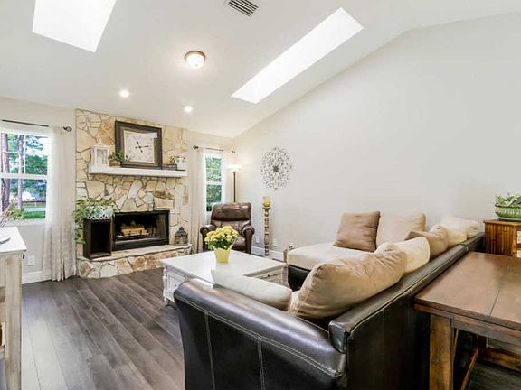 WELCOME HOME! Beautifully updated home sitting on more than an acre of meticulously kept land. This home will captivate you the moment you enter with laminate & tile through out,wood burning fire place,updated kitchen w/ granite,stainless appliances,wine cooler & water purifier,updated bathrooms,large bedrooms & walk-in closets,newly painted both exterior & interior.Another superior quality to this home is efficiency, all exterior doors are impact proof, newer roof, newer A/C & hot water heater(2013)all contribute to the very low electrical costs ($150/month in the summer!).Step outside to find the most adorable chicken coop,irrigated garden area w/ timed sprinklers,multiple fruit trees,3 stall stable. Newer & refurbished water softening system and newer drain fields (only 3 years old).