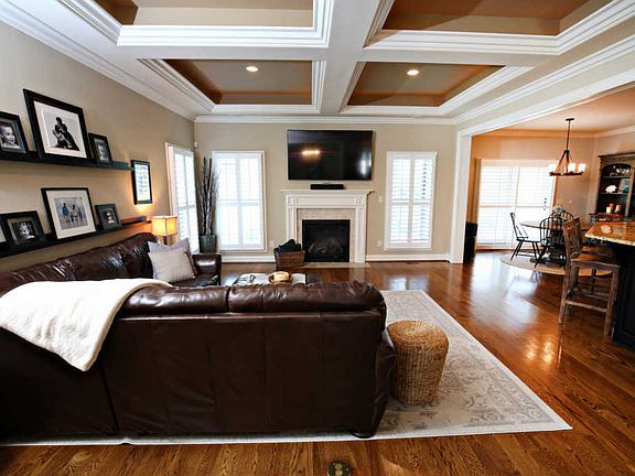 This beautiful five bedroom home is located in Goshen's highly desirable Longwood neighborhood. It offers a first floor primary bedroom suite, hardwood flooring, and impressive trim details throughout. Many tasteful updates were completed including updated paint colors, new hardwood in the primary bedroom, a custom primary closet, and much more. Upstairs you'll find three bedrooms and two full bathrooms. The finished lower level also has a bedroom and full bathroom, as well a theater room, a family room, a convenient home gym, and a library. Current owners added the library along with a gorgeous wet bar in the family room, that is complete with cabinetry and peninsula style seating. Dine al-fresco with guests and enjoy use of the covered patio during the warmer months. This home has a >> >> spacious three car garage with ample room for storage. The Longwood neighborhood is positioned across the street from the award winning North Oldham School Campus and offers a clubhouse, pool and tennis courts as part of the neighborhood!