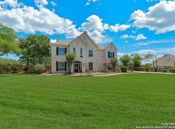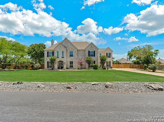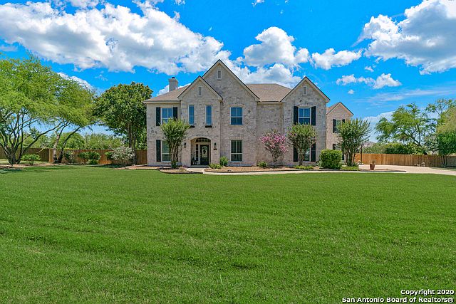 BEAUTIFUL, 4 Bdrm 3.5 Bath home, has a 3 car - side entry garage. It's nestled on one acre, on a cul-de-sac in Helotes! Entertainers delight w/2 living areas, the game room has plenty of space for entertaining friends & family. Fireplace in family room, open kitchen offers large island with cook top, granite counter tops, SS appliances, built in oven & plenty of cabinet & counter space! There are two eating areas, a formal dining room and breakfast area. Open floor plan, high ceilings, a study and much more! The Master bedroom suite has a separate sitting room...could be used as nursery/5th room. Master bath has whirlpool tub, walk-in closet, double vanity, walk-in shower with glass door. All secondary bedrooms offer plenty of space for a growing family. This resort style home has a backyard oasis which includes a fire pit area, an in-ground heated pool with a slide, a waterfall, and colored lights along with cantera fire bowls. There is an 18x18 covered cabana with a mounted television and a wood burning fireplace Enjoy barbecuing with friends & family while enjoying your backyard resort, there's fun for the whole family! Mature trees and landscaping in the front & backyard. Move in ready, A MUST see!