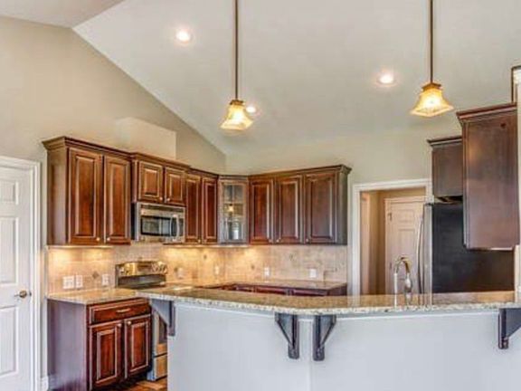 Super beautiful home in the ever popular Bellechase neighborhood in southeast Wichita!! This lovely home is 4 years old so all components are in excellent condition. Upon entering this home you will notice the expansive view overlooking the lake & backyard thru three massive windows! WOW!! Also featured are hand scraped hardwood floors which are super durable & easy to clean. Large, open kitchen with tons of cabinets, a pantry, granite countertops & beautiful matching stainless appliances (to be included with the sale of the home). Directly off the kitchen is a mud room which adds great value for storing shoes, coats, homework, electronics, etc. Another sweet bonus is the massive family room in the basement which includes an amazing wet bar area (refrigerator stays). Family room is wired & ready for a projection tv system with surround sound. Security system is available for transfer to buyer, the homeowner will pay for the remaining contract term of two years. Last but not least there is a storm shelter (measures approx 4' x 6') in the storage room of the basement where you can stay safe from bad weather or store valuable items. Call (316) 252-3350 for more information.