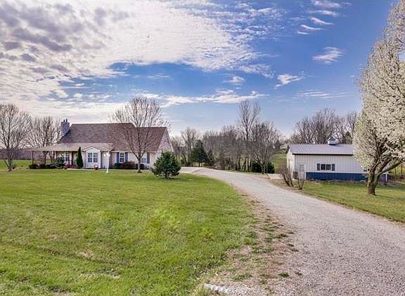 Peaceful Living on 3.5 Acres! Relax & enjoy the views on the covered wrap around porch. This property has a nice outbuilding w/concrete floors & electric. Main floor of home has a fireplace, formal dining, large kitchen w/plenty of cabinets, granite counters, & patio doors lead to a big back deck that overlooks a private yard. Main level master & laundry! 2 large bedrooms upstairs have huge closets & share a full bath. Finished walkout bsmnt has a family room w/a fireplace, a 3rd full bath & a bonus 3rd car garage~