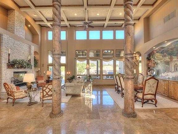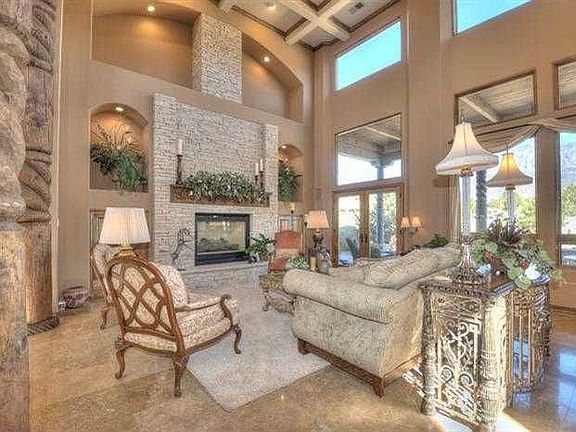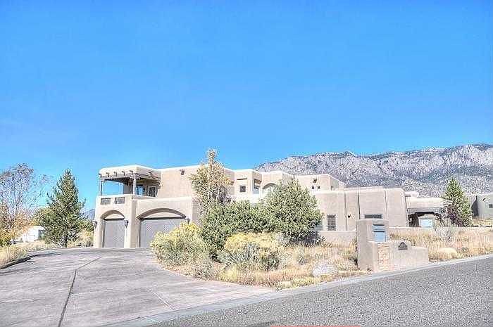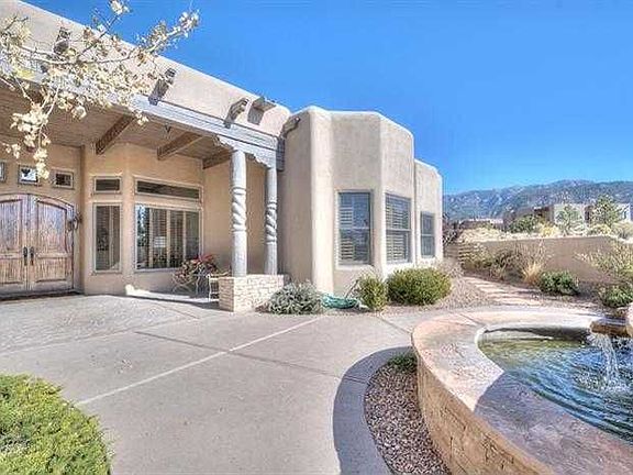 Incredible Mtn & City Views from this Custom Rutledge Hm in High Desert on .93 Acres. Stunning Views from Living & Dining Areas look directly at the Sandia Mtns. Travertine Flrs, Carved Beams & Elegant Box Ceiling Overlooking the Lush Back Patio w/Waterfall Bunco, Firepit & Built-in Wolf Grille. Gourmet Kitchen w/Granite Island/Seating 5 plus Wolf & Subzero Appliances, Halbert Cabinets & Nook. Master Suite & Full Bath, In-Law/Guest Qtrs w/2 Bedrms & Full Bath & Study ALL on Main Floor.