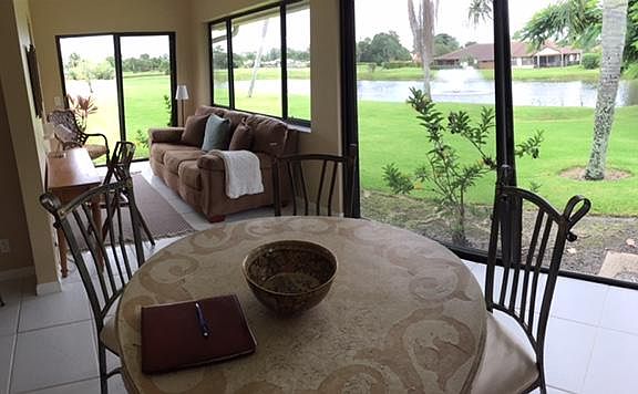 Largest & most desirable ''Heritage'' model with panoramic lake & golf course views. This light & bright, open floor plan includes 3 bedrooms with walk-in closets in each room and a fully enclosed sunroom that could serve as a fourth bedroom, den or office. This home has been well maintained, comes completely furnished with contemporary designer pieces and is move-in ready. Bring your golf clubs and move into one of Palm Beach County's best kept secrets, Eastpointe, featuring 2 Fazio designed golf courses, 16 Har-Tru tennis courts, 2,800 sq. ft., heated pool, exercise room and 2 clubhouses.