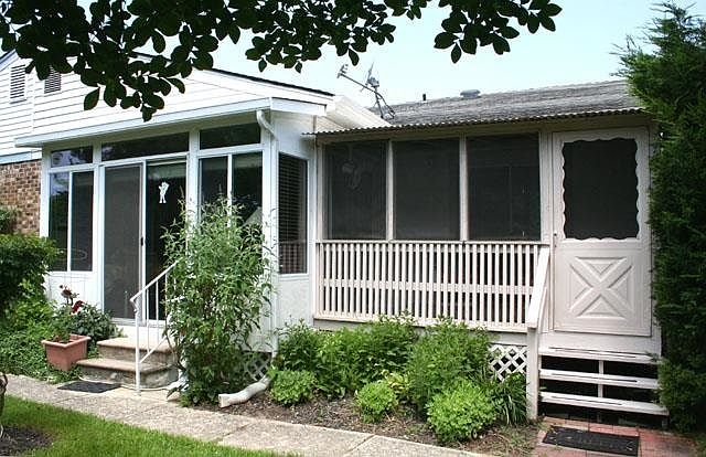 Courtside quad offering 2 bedrooms and 1.5 bathrooms. This spectacular property must be seen to believe it is a quad, larger than the average Village Green twin with stairs to the finished attic which offers abundant storage. Invite family, friends, and entertain to your heart's content in this inviting, open, and spacious beach house or retire for year round living. It has it all! Renovated kitchen with new appliances, Corian countertops, and matching breakfast bar. Sun porch with dining table for six and a screened-in porch for enjoying the beautifully landscaped rear yard with sprinkler system and mature trees which create a private oasis. For a finished look, the side yard is enclosed with outside shower, storage shed, trash receptacles, and A/C condenser. This excellent rental property is being sold furnished per inventory