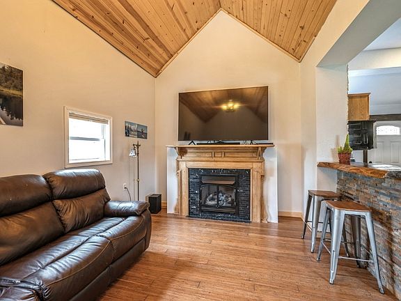 Beautifully remodeled home has newer kitchen, granite counters, stainless appliances, stone tile backsplashes, tall vaulted ceilings in family/living room with gas fireplace and breakfast bar with live edge counter top! Remodeled bath, lower rec room. Super sharp home!!!