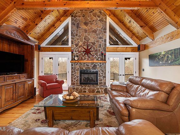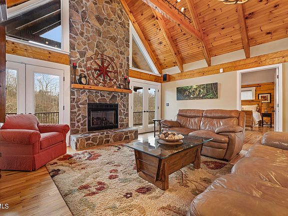 Welcome to your enchanting riverside retreat where rustic elegance meets modern comfort! This captivating 3-bedroom, 3-bath log home boasts cathedral ceilings that soar overhead, creating an expansive sense of space and grandeur.