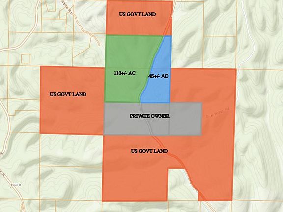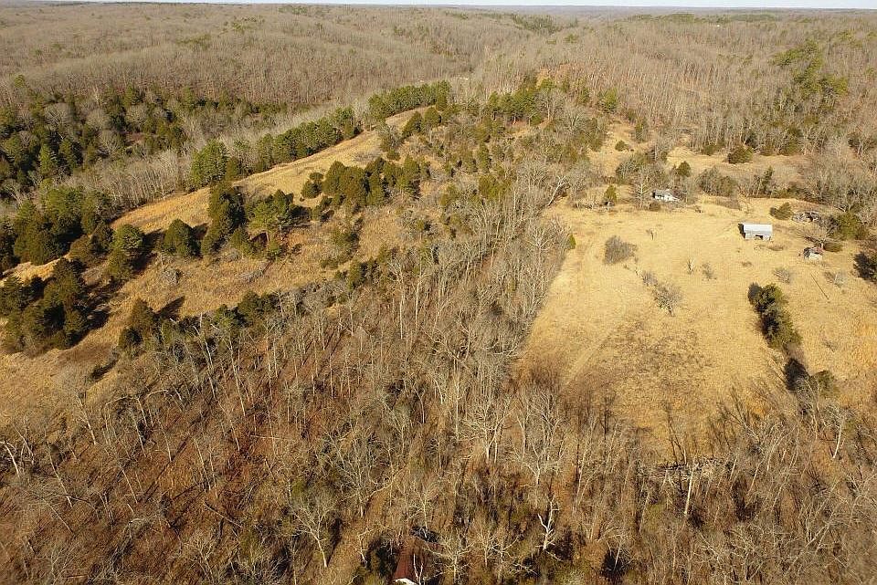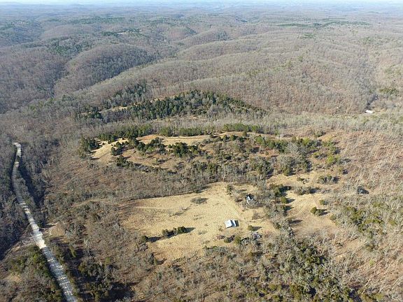 Wildlife can thrive on this 157+/- acre property as it offers the perfect combination of cover, food, water, and elevation changes. The cleared ridge tops with spectacular views of the rolling Ozark hills would be ideal for your tree stand, or better yet your dream home. Property has government land on 3 sides and various live springs flow on the property, and feed into the pond or watershed into Blue Creek. A visionary might foresee the potential of a spring-fed lake in the main draw with building sites for cabins along the hillside. Currently a few old homesteads and barns line the field, one of which has an non-functioning well. Property can be sold as a whole or split into East/West sections along Blue Creek Rd, approx. 45 acres on East & 110 on West. Owner financing possible.