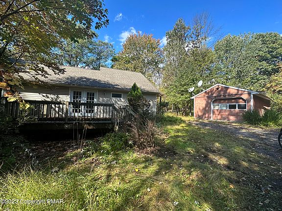 HIGHEST & BEST offers due by 2pm on January 8, 2024.............. Estate sale, being sold as is....Four Bedroom Ranch, with Two Full Bathrooms. High Wood Ceiling in Living Room. Huge Stone Fireplace with Woodstove in Family room. Two washer/dryer laundry hookups. Private location, home sits on 3.8 Acres. Garage with hobby area connected PLUS a Carport. Deck. Two additions were added in 2008 & 2009. Septic recently pumped out . Located in Pocono Mountain East School District.