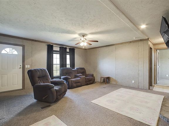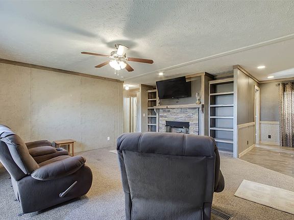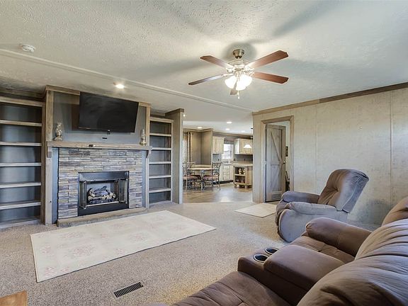 Almost new 3 bedroom / 2 bath doublewide home on 6+ fenced acres with majestic views from the front porch. Faux stone gas fireplace in large living room flanked by built-ins, split bedroom plan and farmhouse finishes makes this lovely home even more inviting. Mostly cleared pasture land already fenced for your cattle or horses. Easy to show, make your appointment to see today!