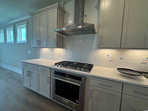 - Features: Kitchen Exhaust Fan, Kitchen Island, Pantry, Stainless Steel Appliances, Solid Surface Counters