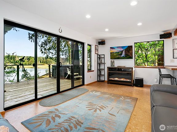 Don’t miss this stunning, completely private waterfront retreat with breathtaking views throughout. The main floor welcomes you with cork flooring, an updated kitchen featuring soft-close cabinets and a hidden dishwasher, and a bright living room filled with natural light and sweeping water views, plus a 3/4 bath. Upstairs, the primary bedroom offers incredible views, skylights, full bath, and a private deck overlooking the water, along with a second bedroom. Enjoy a finished heated shed/studio with laundry and craft space, newer roof, new septic, tons of storage, outdoor sink plumbing, retractable awning, hot tub, multiple decks, and your own beach oasis. Community features a private boat launch and additional parking.