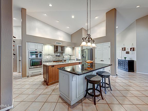 PRICED TO SELL!! Gorgeous single story home in the sought-after Foothills of Ahwatukee. This 4 bed, 3 bath home backs up to a wash offering wonderful privacy and is perfect for entertaining with its flexible open floor plan. The spacious gourmet kitchen includes beautiful custom cabinets, granite countertops, stainless steel appliances, a wine refrigerator and double islands.