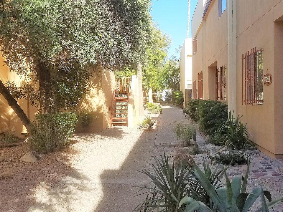 This a rare, hard to find ground level unit. The kitchen was just redone from the walls out. New carpeting was just installed and the interior was just freshly painted. Both bedrooms have mirrored closet sliding doors and ceiling fans. This lovely condo is located in a convenient Central location near U of A, shopping, restaurants., bike lanes and bus lines. It has a back patio area with a private gate to the back ally so groceries are easy to drop off. The common areas are park-like with lots of well maintained trees, palm trees and landscaping.. The community pool area has 2 BBQs, a large covered patio with tables lounge chairs and a large grass area. This sharp unit is perfect for the U of A student, part time visitors or those wishing to down size. Easy to show!