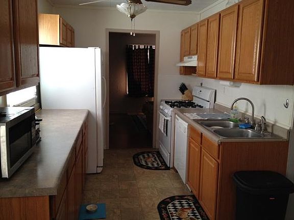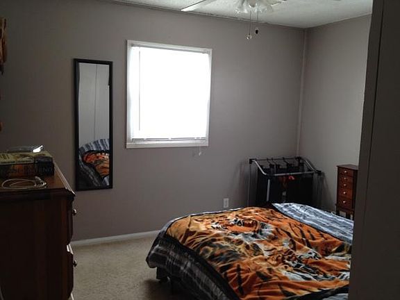 Offering a 3BR/1BA home, with Dining Room and attached 1 car garage. Located near County Market, schools, on a quiet street across from the public stocked pond. This property has W/D hookups (and W/D included if needed), Central heat and air, ceiling fans throughout, blinds, hard flooring in the non-bedroom living areas, updated plumbing, and appliances such as refrigerator, dishwasher, stove, and above the range microwave all included. Pets are allowed w/owner approval. Garage has several storage cabinets and counter space. Fenced yard, with longterm neighbors on both sides. Great for a small family. Seeking folks looking to make a home here, and take care of a property as if it was their own. Large owner shed in the back yard in which storage space can be negotiated if needed. Owner pays for sewer. Tenant responsible for all other utilities. 2 year lease also available.