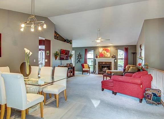 Adorable ranch home waiting for its new owners. This home has excellent finishes from the bright open floor plan to the vaulted ceilings in the great room, master bedroom, master bath and the bay area breakfast room is a beautiful bonus. The kitchen is spacious with a breakfast bar numerous cabinets and ceramic tile flooring. The Vaulted Great Room has room for entertaining and a fireplace that has been converted to a wood burning fireplace. The Master Bedroom is spacious with a huge master bathroom suite and a walk in closet. The lower level is finished with three additional possible sleeping areas and a family room. The back yard has plenty of room with a covered deck and the common area behind the property line.